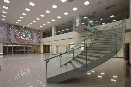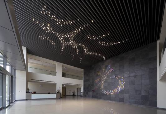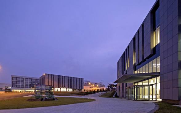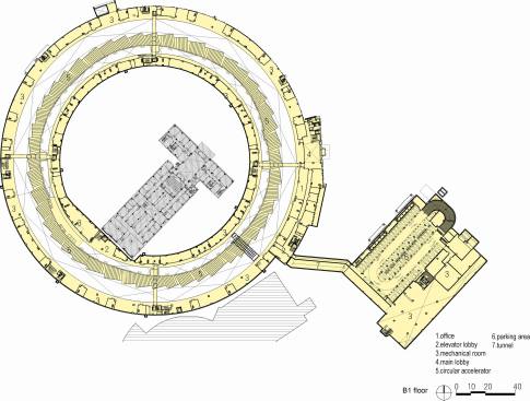 Because of site restrictions, the new facility is integrated with the existing laboratory, presenting the design challenge of allowing the existing administrative center to remain operational during construction. Furthermore, the main ring structure is partially sunken into the ground to provide the highest level of vibration, humidity and temperature stability, satisfying the most stringent research environment requirements.