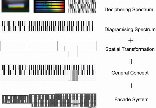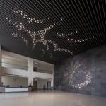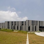 The main entrance to the research facility reflects the theme of “Light Transmission” – figuratively employing the spectrum of light to exemplify the potential knowledge one may extract from scientific studies. A grand entry plaza welcomes arriving guests while open green spaces retain a sense of openness. To minimize impact on an existing tree grove, the auxiliary building is sited to the Southwest, forming clusters of buildings and greenery. The auxiliary building visually emphasizes an interplay of vertical and horizontal elements, echoing the language of light in the main building to create a cohesive campus for synchrotron research.