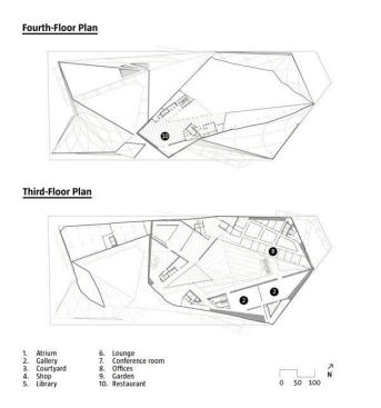 areas. The ramp sequence weaves in and out of the galleries and keeps