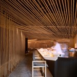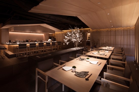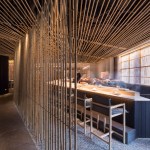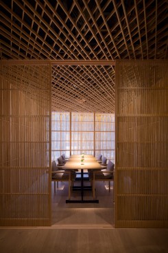 According to the old Chinese story of "Seven Wise Men of the Bamboo Grove," the bamboo grove has healing powers. In order to elicit the feeling of dining within a bamboo grove, we used the bamboo (také in Japanese) in as many ways, and everywhere possible, creating an expansive, flexible Japanese restaurant here in Hong Kong. We were able to produce a restaurant as a garden, rather than a restaurant as an interior space.