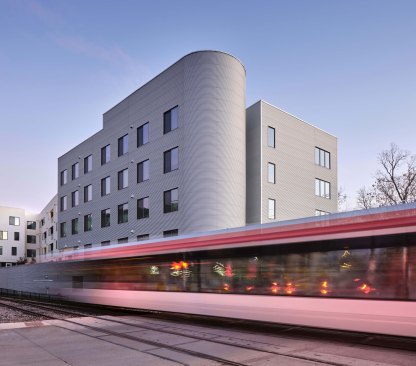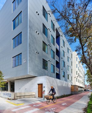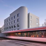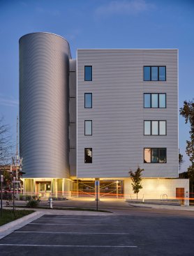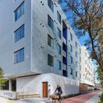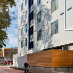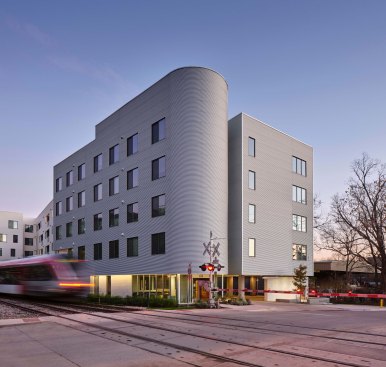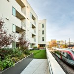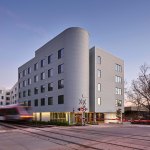 Two components essential to Austin’s continued growth and success, mass transit and affordable housing, come together at Talavera Lofts, one of Nelsen Partners’ most exciting new low-cost developments. Occupying the southeast corner of East Fifth Street and Navasota Street, the one- acre site is located alongside a former freight corridor dominated by metal-clad industrial sheds and dusty parking lots—somewhat off the beaten path even for the traditionally low-rent residential and nightlife district a short walk away. Yet this particular area is poised for growth: the old railway is now the Red Line, the city’s sole operating route of the city’s light rail system, with the nearest station only a block away from where Talavera has open its doors in 2021. That puts the building’s future residents on an economical, five-minute ride from downtown, a major asset given that ninety of Talavera’s ninety-three units will be reserved for applicants earning as little as a third of the area median income.