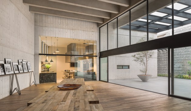 Taller Estrella was designed to accommodate a broad range of disparate, yet simultaneous activities. Located in the primarily residential neighborhood of Bosques de las Lomas on the western side of Mexico City, the project stemmed from a need for a local, kosher, culinary school. From this initial idea, the building’s program expanded to provide the surrounding community with a venue for small events and gatherings; in addition to offering kosher cooking classes, the space hosts art exhibitions, yoga classes, large catered celebrations, and a variety of other activities allowing the neighbors to stay local rather than travel miles through Mexico City’s protracted traffic.