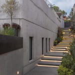 The three-story volume groups complementary program that interlock to facilitate continuous circulation throughout; separate access to each area allows simultaneous and discrete use as needed. For instance, the main event space on the ground level is accessed by walkway from the street. Meanwhile, entry to events on the roof terrace are via a generously landscaped outdoor stair on the other side of the building; this area connects to the interior via the upstairs bedroom, which is kept sparse to accommodate thru traffic. Access to the kitchen is discreet and direct from the driveway between the other two entrances while an interior stair connects to two floors.