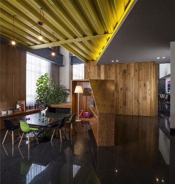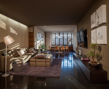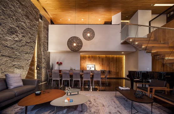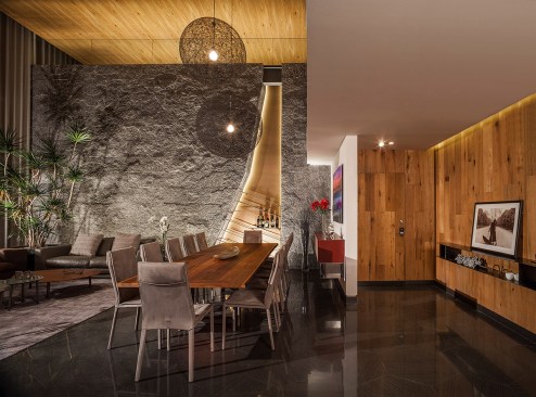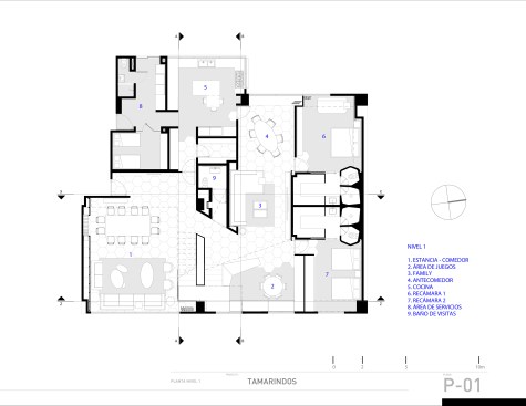 TAMARINDOS apartment was an intervention proposal that set the opportunity to improve a typical luxurious apartment into a design backed up by new habits and processes involving an innovating way of life. The ground floor hosts the core areas: dining, living and family room. Also, it incorporates two kid’s bedroom followed by a play area with a brightly colored roof.The upper level contains the main bedroom designed entirely to provide the client a relaxed atmosphere combined with a worthy and peaceful work studio. Added value is created by paying attention to every specific detail and useful knowledge of material use. The main circulation separates the public areas from the service and becomes the host of a dazzling sculptured oak stair. The cava also evokes art itself by being a visual auction from every point of the opened space The illumination indicates axes and delimitates the user paths. The opening to the outdoor spaces kept the air condition out of the question and became the answer to provide natural ventilation allowing a more rich environment. TAMARINDOS apt. reflects and feels as an excellent place to have a comfort living, on the other ahdns it reafirms itself as a design piece expressed with brilliant composition and elements developing a big spatial poetry.