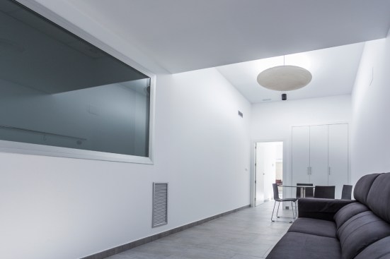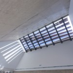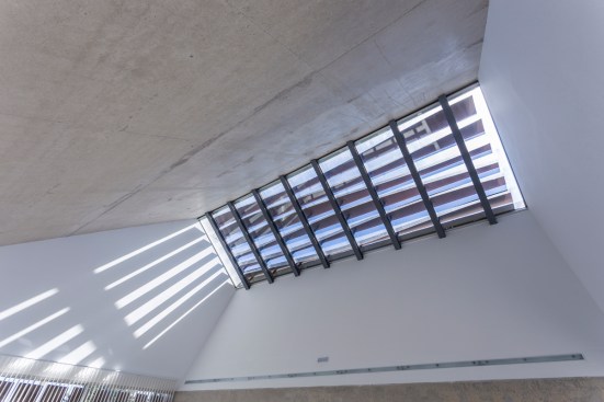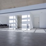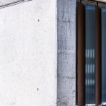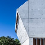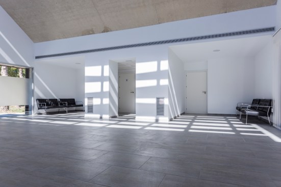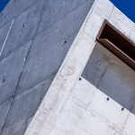 materiality of the building is white concrete, finished in several superficial