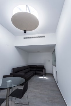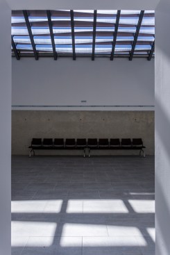 oriented South that articulates circulations to funeral parlors and restrooms.