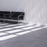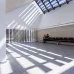 an exterior metallic louvers filter the sunlight draws inside with its projected