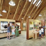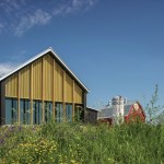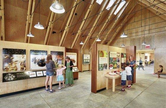Part of the reduction in vegetation can be accounted for by a modest 7,530-square-foot center that MSR designed to incorporate exhibition space, a multipurpose learning lab, a demonstration apiary, and a honey extraction room that provides public education on pollinators and their role in sustainable ecosystems. The center’s configuration encourages interaction between its functions, and the interiors open onto demonstration pollinator gardens, beehives, and future food production plots.