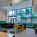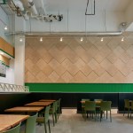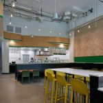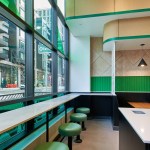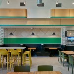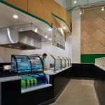 Tasty Kabob is a fresh halal food truck concept that currently has six trucks operating in the Washington, DC area. The client’s goal was to expand its business by adapting its original concept into welcoming brick and mortar locations. CORE worked closely with the client on the prototype design for the first location in Tysons, VA, which included the design for the space’s storefront and building façade, in addition to the interior. The vision for the fast casual restaurant focused on providing the favorite Afghani cuisine of the founders, father and son team John and Steve Hanifi, without creating an “ethnic” feeling restaurant. Thus, the team prioritized envisioning the brand and architecture as new, clean, and fresh versus an “old country” heritage throwback. An inviting seating area and well thought through queue line create an intuitive and efficient fast casual dining experience. To accommodate Tasty Kabob’s emphasis on order-ahead and delivery, the team focused on the pre-ordering process, providing a designated queue and pick-up area to maximize speed of service. Photography: Ron Ngiam