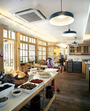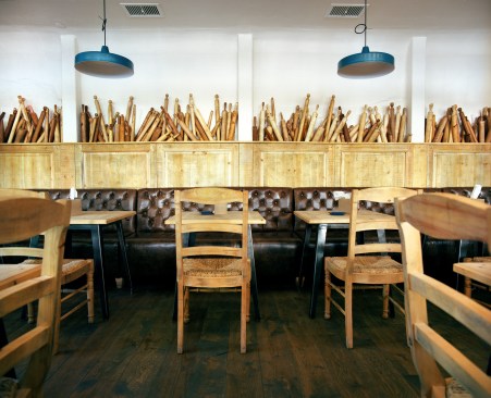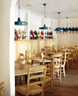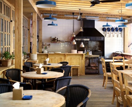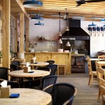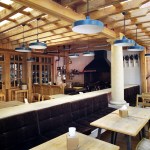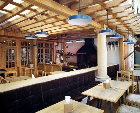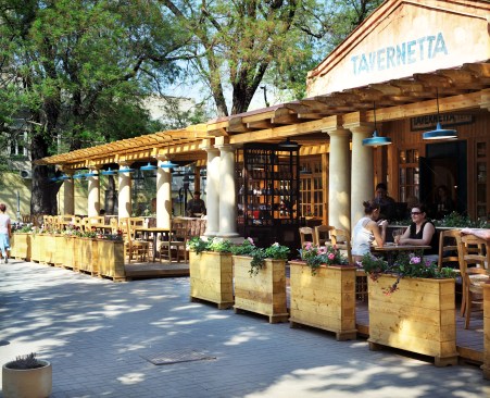 “Tavernetta” is an Italian restaurant at the corner of two quiet streets of the historical center of Odessa. It takes a one-floor building with a large wooden structure and consists of two main parts – the inner hall with a kitchen and the summer terrace, opened to the street. All the materials and interior elements for this project were chosen to emphasize a specifical spirit of Italian province. The dining hall is very light, it’s divided into several connected spaces and includes a bar, a table with snacks and appetizers and a special zone where the guests can watch the process of making real Italian pasta.