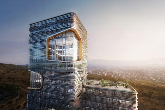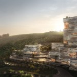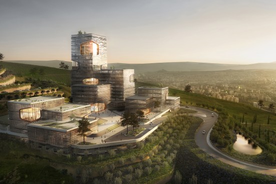 The roofscapes, inspired by the Caucasian natural landscapes at different altitudes, form the fifth facade of the TBC Forum and provide a vertical cluster of landscapes which become part of the Lisi green valley and the Georgian panorama.