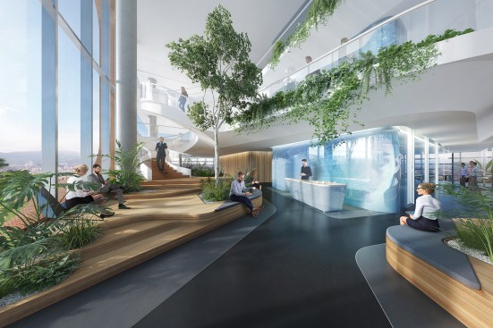 UNStudio has carried out extensive research into the design of optimal work environments and the positive impact these can have on the health, wellbeing, creativity and therefore, productivity. Within the design, both physical vitality and psychological wellbeing are understood to be synonymous, while the creation of community is considered fundamental to the encouragement of communication, interaction, knowledge exchange and creativity. In the design of the TBC Forum, environmental concerns are not merely related to the energy performance of the building, but to social sustainability and the performance of its users.