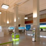 The project posed the challenge of integrating two contrasting elements, the recuperation of the historic character of the space and the marketing component of modern communication appliances. Creating a harmonious synthesis between these elements was possible through a rigorous approach towards details and the spatial organization of the program.