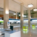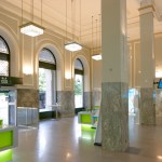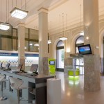Every element from the external masonry, forged steel framework and glass façade to the interior mouldings on walls and ceilings, and lighting fixtures were recovered and treated. However since the original floor finish was destroyed in an earlier renovation, the installation of a raised floor allowed for new electric wiring to be introduced without harming the historic details on the ceiling and walls.