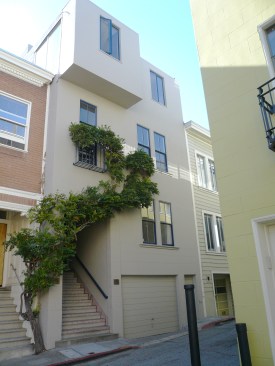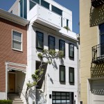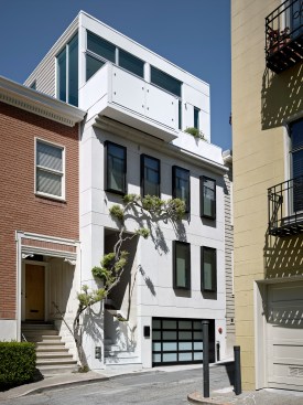 The original house suffered from a plain, unarticulated stucco façade and unusually narrow, disjointed interior spaces. The entry was separated from the main living spaces by two floors of stairs and dark halls creating an uninviting first impression. With the tall ceilings and the location in mind, the architects recognized the potential to transform the house by flooding the entry and main living space with light while also showcasing stunning views of the Golden Gate Bridge, Coit Tower and the Transamerica Pyramid.