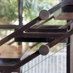Creating a four-story clearspan staircase meant a lot of thought needed to be put into the structural elements, especially since one of the design goals was to keep the stairs as visually light as possible. To make the stair sturdy without using a large span of steel, Lundberg created a custom truss design with slim, blackened steel stringers.