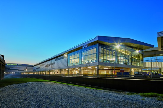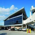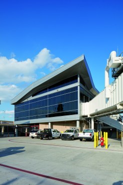 The project replaced the outdated structure by constructing a new two-level, almost 80,000-square-foot terminal consisting of a pre-fabricated modular envelope (shell and core). The gates at the new domestic flight terminal can accommodate five narrow-body aircraft or regional jets.