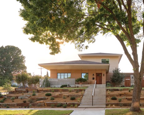 Listed on the National Register of Historic Places since 1980, The Heights and many of its houses reflect the varied tastes of original owners, setting an architectural standard for middle- and upper-class developments. Over the years, the community has become close-knit through renovations of its eclectic residences, encompassing architectural styles such as Queen Anne, Victorian, Georgian Revival, and Craftsman. One new addition, a 3,550-square-foot, rammed-earth house by the local firm 1Architecture, continues the community’s eclectic tradition, adding Prairie School influences into the mix and furthering the conversation surrounding sustainable residential construction.