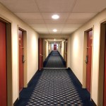 The renovated hallway also benefits from the upgraded three-dimensional ceiling. The added eye-relief eliminates the oppressiveness often seen in long, straight corridors.