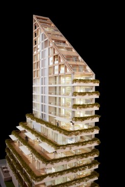 Terrace House will be the world’s tallest hybrid timber structure. The goal of this innovative wood, glass, and concrete tower is to make a prominent gesture that demonstrates Vancouver’s commitment to forward-thinking sustainable design and advanced timber engineering and construction.