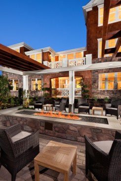 The project received a density bonus for providing multiple types of age-targeted living arrangements. High-end finishes were used to bridge the gap between builder-friendly construction and custom-level City expectations and to create memorable spaces. These finishes include cedar shingle exteriors with stone and brick accents. A community room, bocce court, outdoor kitchen and fire pit draw residents to the active common areas, while surrounding gardens offer quiet zones with off-site views.