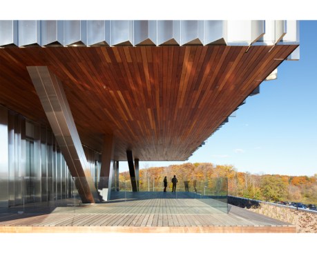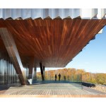 TDHSC has been designed for LEED Gold certification and employs a number of sustainsable design strategies in keeping with the University of Toronto’s mandate for sustainable building, including: stainless steel cladding panels that minimize solar gain at glazed areas; reflective properties of the panels and their configuration has a bioclimatic effect – in the summer, solar heat is deflected from the envelope and in the winter warm air trapped within the panels provides an insulating blanket of tempered air around the building; roof gardens are populated with indigenous plants and an in-ground irrigation system to minimize water usage; grey water collection; and a tree relocation and site neutralization strategy.