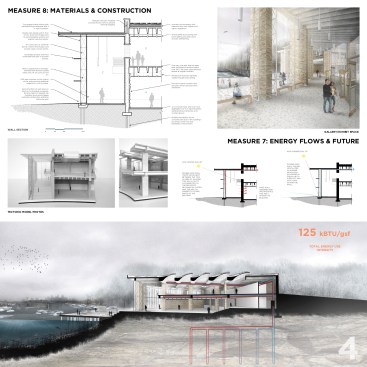 The programming of both the site and building seek to mitigate this issue. It restores the damage done to the site by its industrial past, and returns it to a ‘performative’ environment that provides a place where natural vegetation, wildlife, and humans can coexist. It creates and maintains on-site ecosystems for native wetland plants and animals to thrive, while also tapping into a regional network of open spaces that are important in the migratory patterns of various bird species, including the bald eagle.