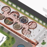 Using architecture as a tool to reimagine storage and sustenance into form, the granary stores guide the overall building concept. The eight cylindrical granary-styled forms are made contemporary through the topping of domes with apertures that take into consideration the solar orientation of light within the site to create a distinct atmosphere for each of the programs within. The internal infrastructure of these chambers see to it that the building accommodates a multiplicity of programmatic functions. They are connected through an ‘indoor den’ — a horizontal interstitial space that extends the length of the entire building to provide a new public space in service to the community.