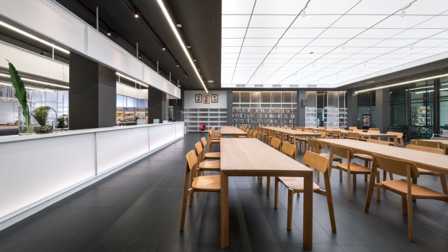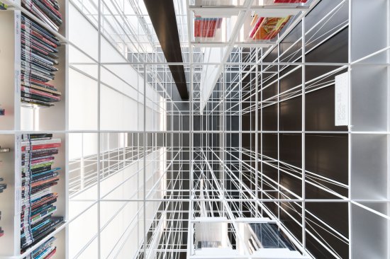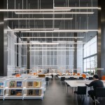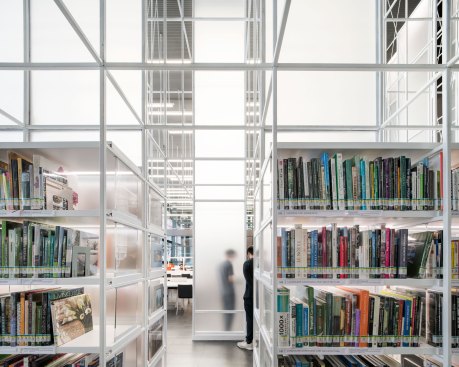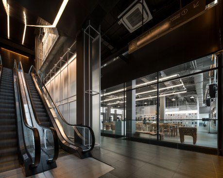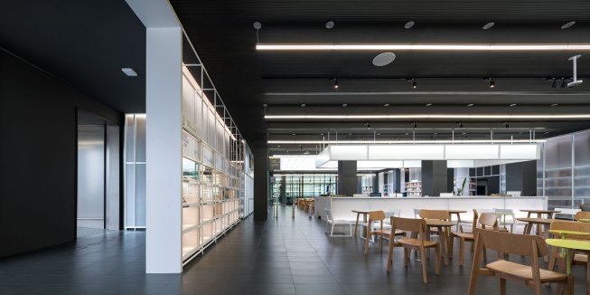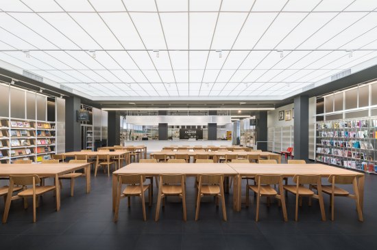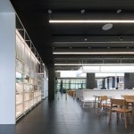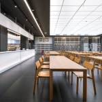The resource center is not planned as traditional silence libraries. Instead, a large portion of space is designed to encourage conversations in a setting more like a cafe or a co-working space. These work spaces are spread throughout the building mixing with other programs where work and discussion can happen everywhere. The openness of the space brings people together and allows for them to start to interact with a spontaneous conversation. The main circulation cut through the section of the building bringing people to flow pass different facilities to be inspired by what others are doing. Most of the spaces are flexible with movable furniture and adjustable systems to allow for flexible situation and various creative activities to happen. Exhibition nodes are integrated into all spaces – with shelving systems, wall systems, spaces along corridors, corner spaces, central spaces. Fresh ideas are always presented within reach and always surround us for inspiration.