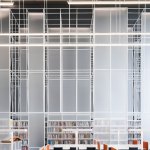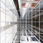 Within the historical building, the new is inserted as an object, placing within and offsetting from the existing envelope, clearly revealing architectural features from the 30’s. The present-day material in its light, translucent, blurring, and glowing quality is having a dialogue with the massive character of the historical shell. The new and the old are interestingly contrasting, enhancing and complementing one another.