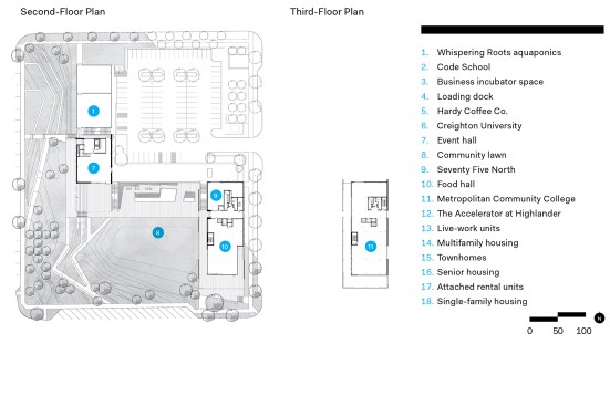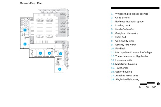 The complex holds educational institutions, offices, an event space, a food hall, incubator spaces, and even aquaponics. How did you curate these tenants?