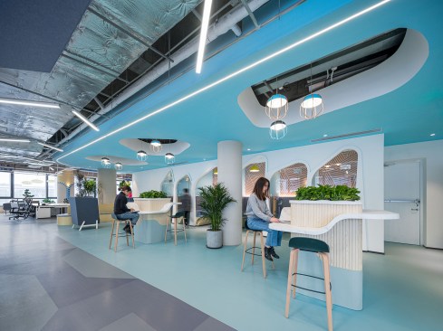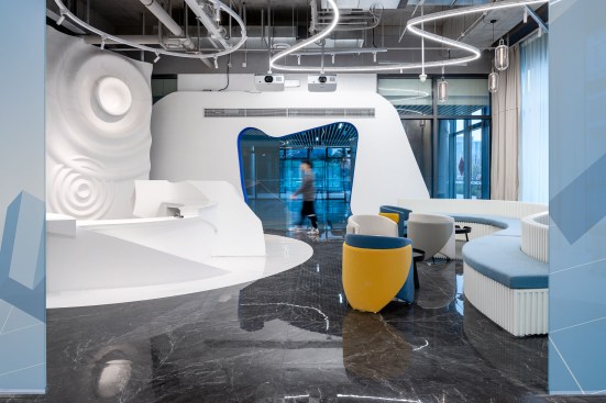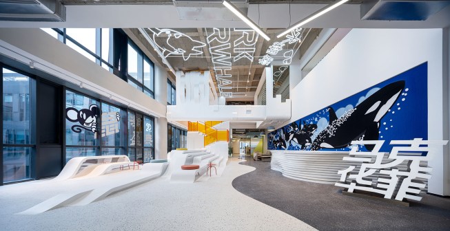 The headquarters of Mark Fairwhale, a cutting-edge fashion brand based in Shanghai, has been tailored to create an environment which reflects the company’s DNA by utilizing water and whale themes to create a flexible working space that echoes its fresh, youthful style.
