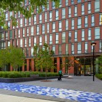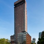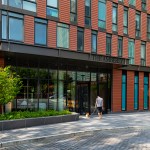Residents can access the building from a dedicated drop off on the north side of the building, and have access to underground parking. At the south side is a public plaza designed by SCAPE Landscape Architects, which is activating the neighborhood.