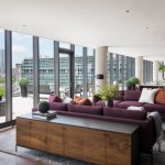 What really makes this building stand out is The Overlook. Rather than keeping the valuable upper floor for a private penthouse, the architects created a lounge and expansive terrace where all the residents can enjoy the unparalleled views