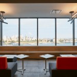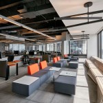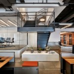 Among the priorities of the design: inspiring creativity, fostering collaboration between the accounts-oriented and creative teams with ample room for a variety of meeting spaces, and leaving the views of the river and beyond unobstructed for all to experience. These goals were achieved by creating three distinct sections within the open office areas, which were further distinguished by being set at various elevations: raised platforms with offices and conference rooms, workstation areas, and perimeter meeting spaces.