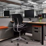 The historically industrial, mercantile and marine context of what is now the Financial District inspired the overall aesthetic of the space, including materials, finishes, and product selections. It also influenced the design of custom components, including the custom bench system at the office perimeter, as well as workstations with solid wood desktops and raw steel components.