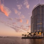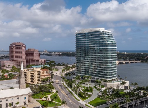The 25-story tower features 69 condominiums, ranging from 3,575 square feet to a 14,500 square-foot full floor penthouse. Each of the units are floor-through, offering all residents views of the water, and are served by private elevators. The open floor plans orient the main living areas and master suites to the east, capturing views of the waterway and Palm Beach. A series of private, below grade 2- and 3-car garages offer a total of 165 parking spaces.