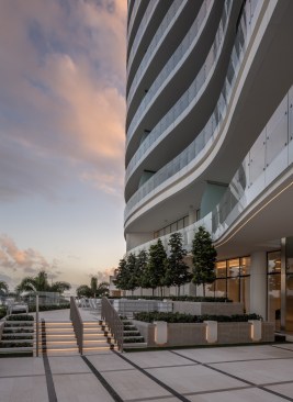 The Bristol represents a new luxury residential experience in West Palm Beach. Located along the Intracoastal Waterway and adjacent to the Royal Park Bridge, the design was inspired by the notion of a yacht sailing along the water and its ensuing wake. The contemporary architectural expression features an undulating floor-to-ceiling curved-glass façade that activates the elevations and evokes images of waves on the water. Deep curving balconies add to the design’s fluidity while also providing shade to the units.