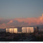 Multiple configurations for the massing allowed by the existing Design Agreement were studied to arrive at the most logical site response considering the prominent freeway location, existing facility uses and locations on-site, existing land leases, below grade parking requirements, and necessity for a phased development.