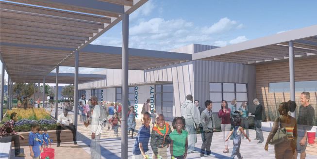 The Oakland Unified School District had a clear and bold goal to transform their nutritional services program throughout the District by providing fresh, healthy, and tasty meals to over 30,000 students daily. Central to this vision is the creation of their new Central Commissary at the site of Foster Elementary School. This project combines three distinct programs: a 30,000 square foot central kitchen, an education center, and a 1.5 acre urban farm, all on one site creating a singular, integrated experience for the students of Oakland Unified School District and the Oakland community. Not only will the Center produce nearly 50,000 meals each day, but it will offer a rich tableau of educational programs (developed in conjunction with the Center for Ecoliteracy) within the classrooms and the urban farm tailored towards all grade levels emphasizing STEM learning, farming, environmental science, and a range of career-based educational programs. This project will help to support the District’s goal to transform their nutritional services program and create a district-wide culture that connects food, culture, health, wellness, and education.