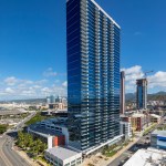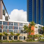 The Collection is located on the former site of CompUSA, also known as “Block E” of the Kamehameha Schools’ “Our Kaka’ako” 15-year master plan. High-rise, mid-rise, townhouse, and commercial components are thoughtfully configured to provide a walkable, pedestrian-friendly district within the existing Kaka’ako neighborhood. A slender, contemporary tower forms the centerpiece of the complex with mid-rise and townhouse components surrounding the central parking structure at its northwest side. This arrangement helps to conceal the parking structure and provide street facing facades. The five commercial spaces, woven into the configuration at ground level combine with landscaped walk-ways around the perimeter to enhance the pedestrian experience.