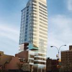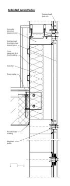 Zapata clad the building in an aluminum and fritted glass curtain wall. “The client didn’t want a dark building, so we looked first at glass,” he explains, “but I didn’t want any green tint in the glass because of the connotations [of] other commercial building types.” As a solution, the architect called for fritted glass, which gives the tower its milky white color. Unlike most frit patterns, Cooper Square’s runs vertically to accentuate the tower’s height and to manipulate the voyeurism/exhibitionism of the hotel’s guests and neighbors.