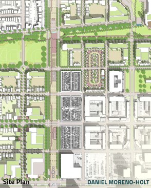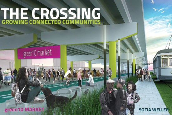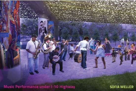 This project is from a multidisciplinary urban design competition that challenges students to devise a comprehensive development plan for a large, urban area. This year’s site, in downtown New Orleans, has a rich neighborhood context, including the historic French Quarter, Central Business District, and Tremé, a low income area with a renowned musical history. The neighborhood is an underdeveloped mix of residential, commercial and industrial uses facing strong pressure for growth. Two very large, soon to be completed projects bolster future development: a veteran’s hospital and university medical center along Canal Street, and the Lafitte Greenway, a 3 mile linear park. I-10, an elevated highway, presents a barrier that could be reimagined and transformed for public use. The proposed design should absorb growth while retaining existing low income citizens, bridge surrounding neighborhoods, and celebrate the site’s rich history and culture.