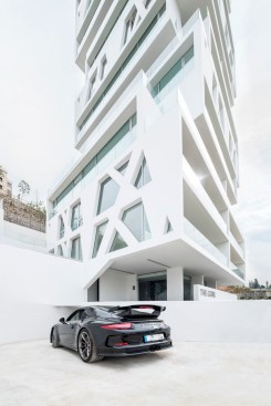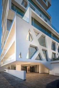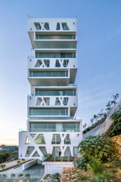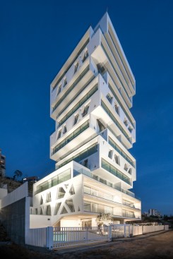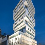 The design with the 14 stacked and rotated floor plans generates 19 attractive apartments in total, ranging in size from 117 to 234 m², with fluid spaces, large balconies and wall to wall window frames. With its freestanding setting on the edge of the city both the view on the Cube itself and on central Beirut are unseen; the vibrant City is your personal wallpaper, day and night.