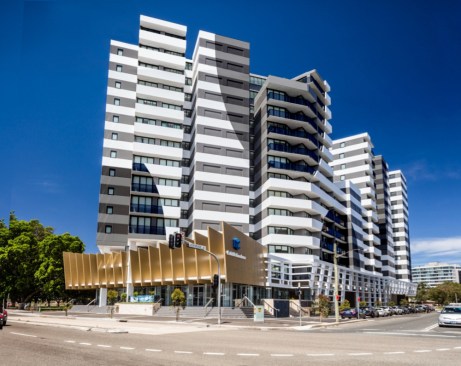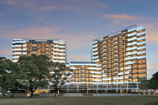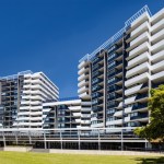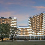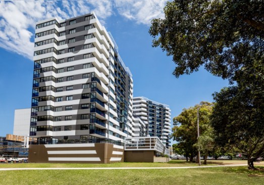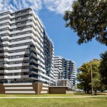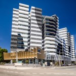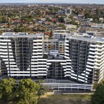 The Curtain, by Tony Owen Partners has just been completed in Wolli Creek near Sydney Airport. The 15 storey building contains 200 units, retail and commercial space.
