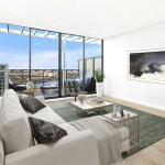 This site fronts onto a large park with the waterfront beyond. The unique design consist mostly of ‘through-units’ with an open rear corridor. As such almost all of the units face north and enjoy the panoramic views. The benefit of through-apartments is that they are naturally ventilated. This allows for natural cooling with reduced energy costs.