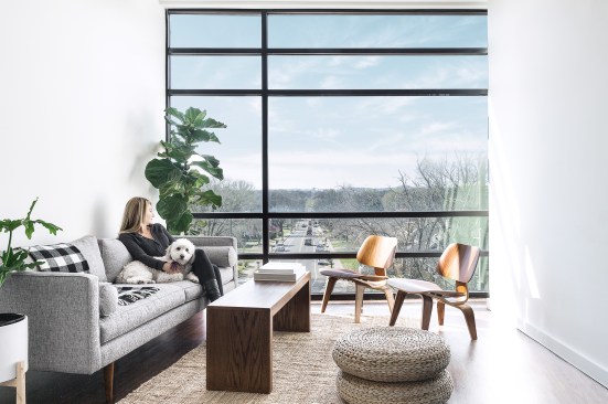 The Eastland introduces fifty-one efficient, micro-unit-inspired apartments to East Nashville. Nestled between a residential neighborhood and a major commercial corridor, the design mindfully echoes its neighbors, relating to the single-family homes to the west and to the large-scale commercial development to the east. Along the Bailey Avenue, residential-facing façade, the scale and articulation of row house-inspired vertical bays expresses the residential use within while ground floor stoops open individual units to the street. Turning the corner onto West Eastland Avenue, the design manages the transition from residential neighborhood to commercial hub in form and in function. The upper level residential units reside in a more commercially-expressed mass. Below, large shop windows illuminate the street convey the commercial activation along the street, invite the public in, and firmly root the new building in the neighborhood. Wide sidewalks and an activated street promote walkability. Inside, the efficient 530sf apartment plan is defined by two living spaces (which can be used interchangeably as a living room or bedroom) joined by a central corridor, kitchen, and bathroom. The flexible plan offers occupants the choice to set up their apartment in a configuration that best suits their lifestyle. Expansive windows provide views of the rolling Tennessee hills. First floor units on the Bailey Avenue façade can be used as a live-work space offering direct access from the street to a home office. The Eastland stands confidently as a transitional structure, connecting the residential neighborhood to the commercial corridor and activating the street.