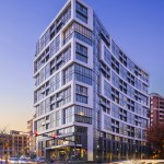 The Edge is a 15-story multifamily tower located on the corner of Edgemoor Lane and Woodmont Ave in Bethesda Maryland. The building punctuates an important corner on Woodmont and serves as a vital link between the two commercial areas of the Woodmont Triangle to the north and Bethesda Row to the south. The public spaces in the building; the lobby and amenities along with 3,000 sf of public gallery space, ensures the continuity of activity along Woodmont and maintains the vibrancy of the streetscape.