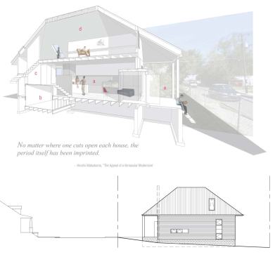 The Ghost Houses project was not supposed to be possible – five units of housing and a studio in three structures on a one quarter acre infill lot with an historic zoning overlay. Yet, by using the history of the site as a wedge we were able to overcome ossified regulations to create a progressive project consistent with our interest in dense, walkable, mixed-use neighborhoods and architecture that is simultaneously responsive to both its locus and global environmental concerns. Through an improvised series of requests, meetings, and public hearings the Ghost Houses became a project that explored the nature of zoning codes as a legal construct in which are embedded social, cultural, economical, and historical aspects of a community’s self image. This process revealed the power of collective memory and positioned architecture as a critical practice that responds to, carefully evaluates, and ultimately helps to shape common values. By conceptually separating interior from exterior and aesthetics from form, the Ghost Houses are a Trojan Horse for instigating, through built form, a new dialog about the possibilities of a once overlooked neighborhood.