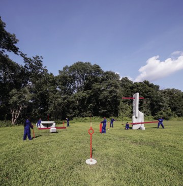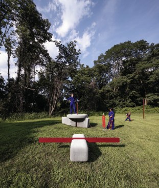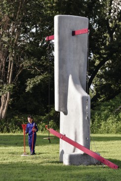 The play-lab is a scaffold to fuel the imagination of the project-based learning curriculum at The Grayson School. An otherworldly collection of curious concrete characters is situated in an open landscape. These colossal creatures are unlike other play-structures. The recognizable colors, textures, and materials of common play-structures have grown up. A series of details provide anchors to tie rope off to, or receive standard dimensional lumber. They are engineered to accept the maximum load the students can throw at them, while also flexible enough to allow the students and teachers to fabricate their own extensions — to take measurements, conduct physics experiments, anchor a game, or confirm a trigonometry equation. These details are practical as much as they are cryptic, with alignments to themselves as well as the cosmos. These alignments are developed in concert with the curriculum of the school. Over the course of their education, students are challenged to discover the meaning behind these design decisions, to calculate their coordinates, and understand the logics of how high-design can influence their whimsical but rigorous education.